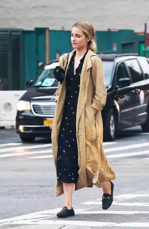 而今年最浪漫的风衣穿搭就要属风衣+印花裙了,浪漫极了。选择长至脚踝上面的印花裙搭配绑带鞋或者穆勒鞋超好看。