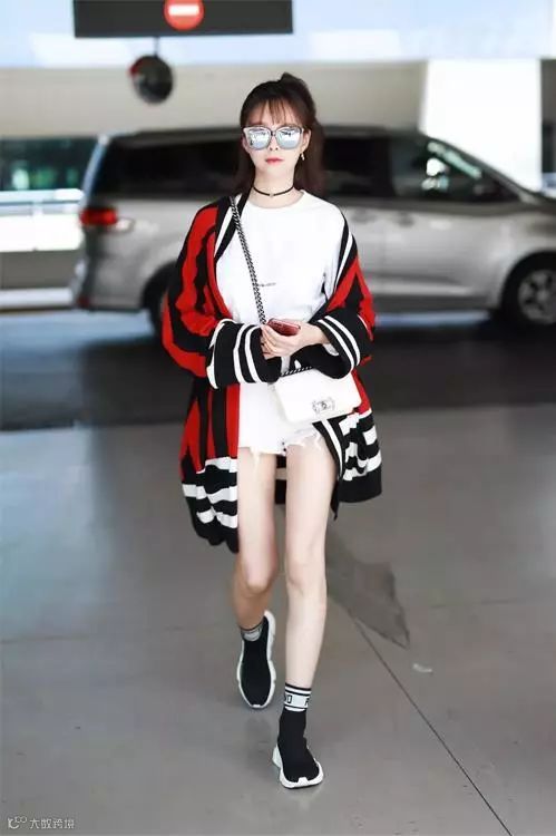 对于秋季来说,作为外套的针织衫姐一般建议选择刚好盖过屁股长度的针织外套。搭配紧身裤搭出细长腿。