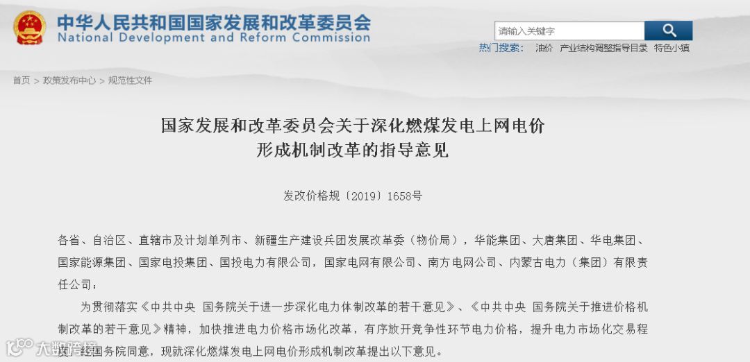 国家发展和改革委员会关于深化燃煤发电上网电价形成机制改革的指导意见