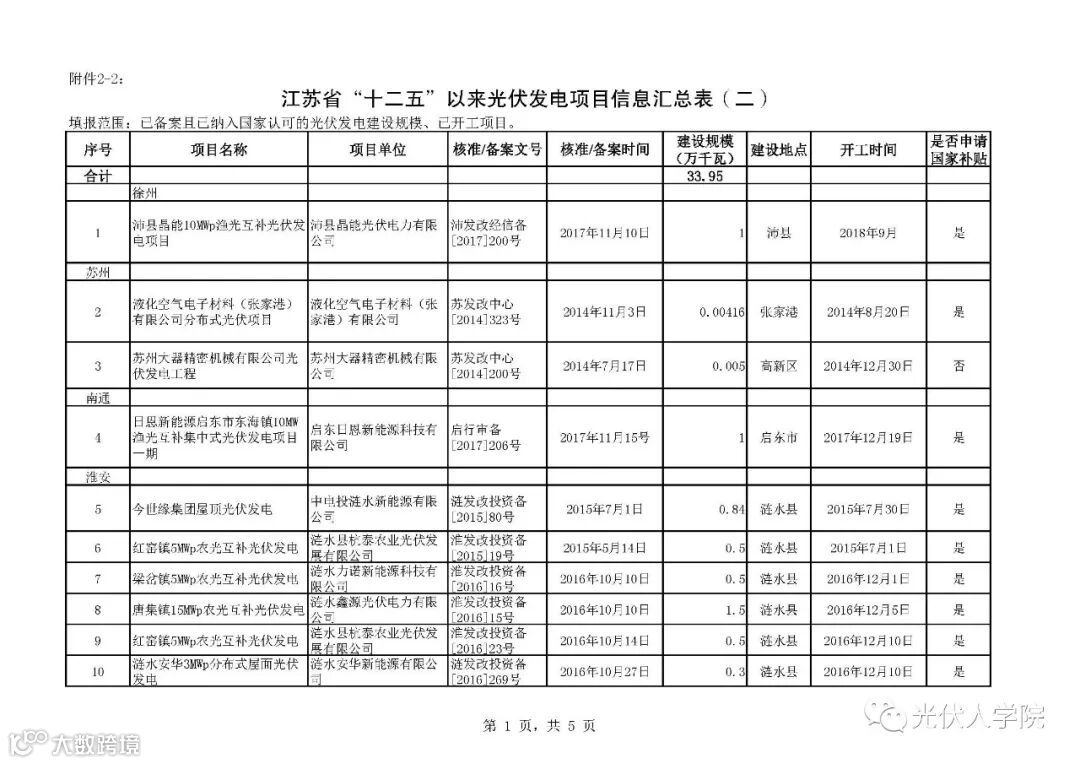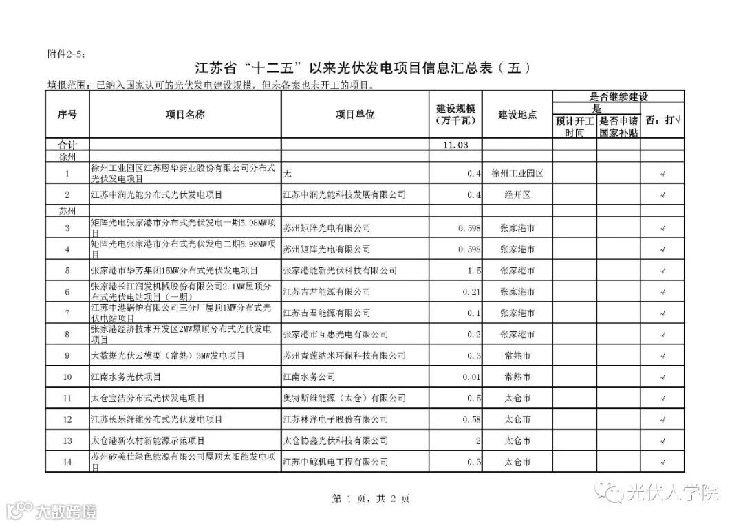 关于江苏省“十二五”以来未建成的风电和光伏发电项目信息的通报