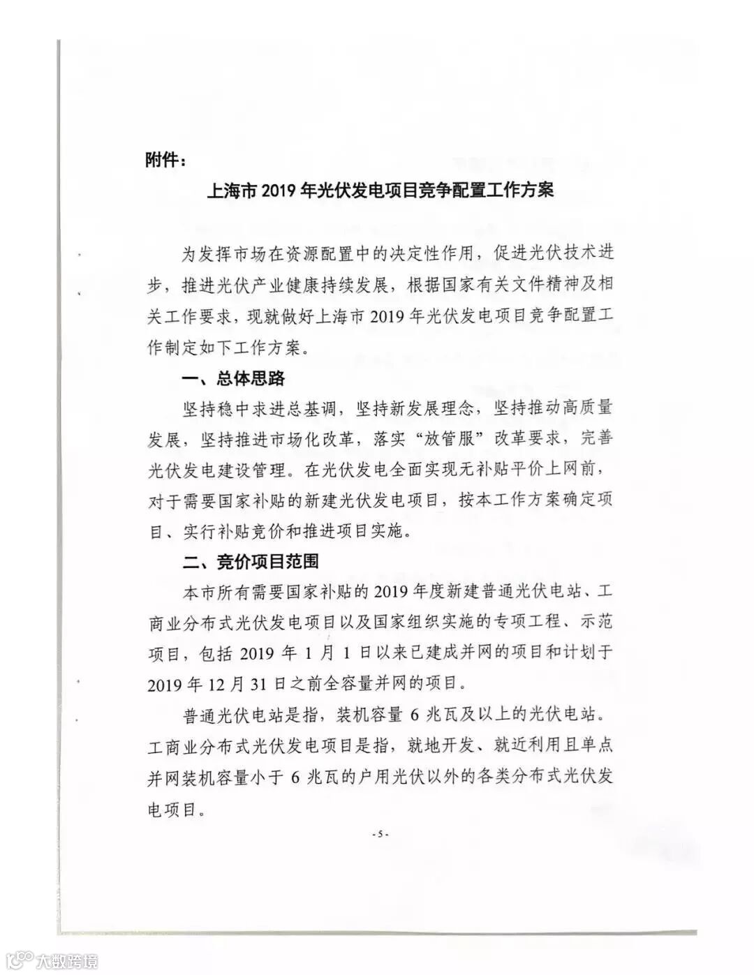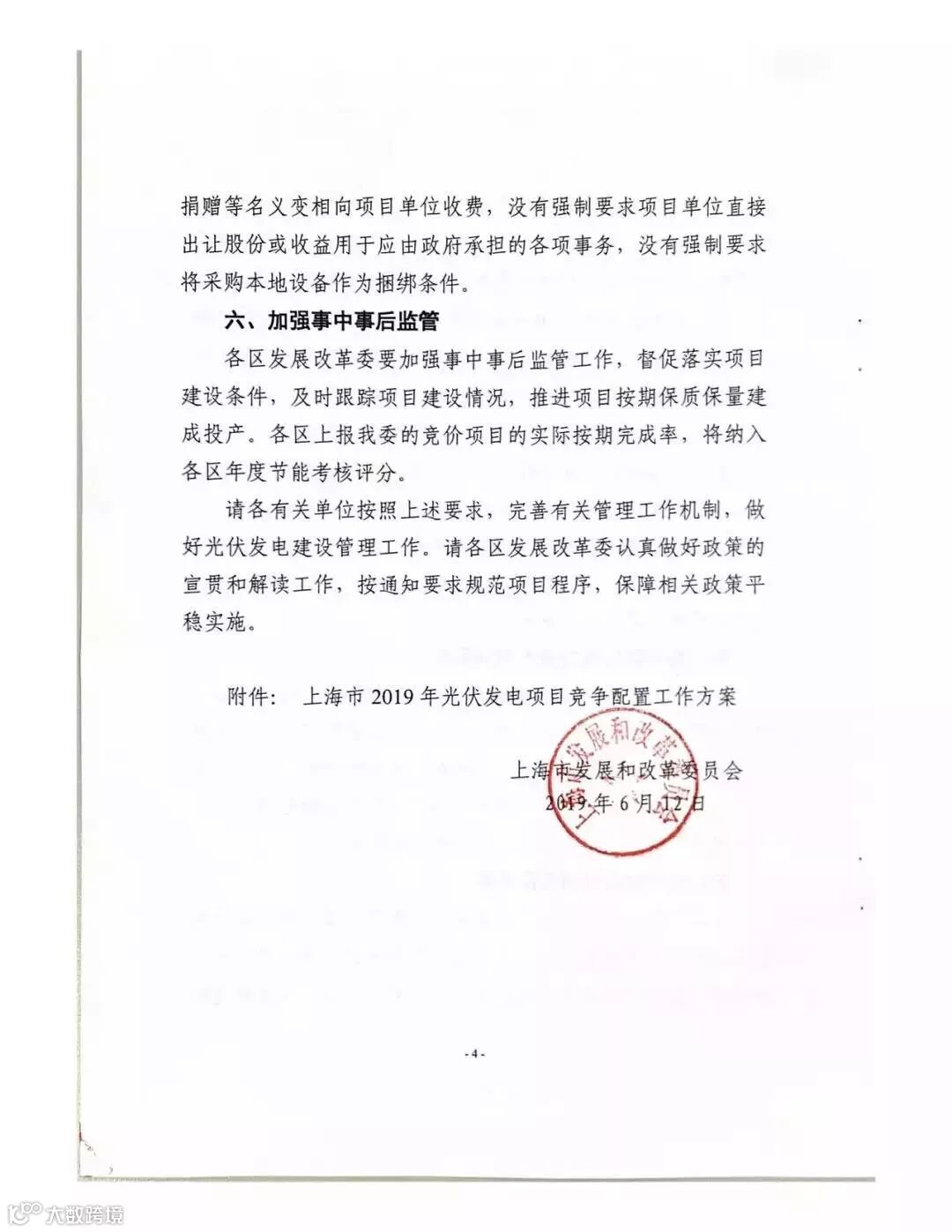 6月12日,上海市发改委发布《关于做好2019年光伏发电项目建设有关工作的通知》,通知中确定了上海市光伏发电项目2019年竞争配置和项目申报工作方案,要求各区发展改革委于6月25日前将项目申报表,相关支持性文件及说明书面报送至上海市发改委。
