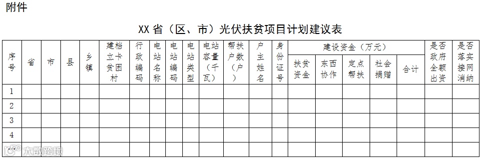 为贯彻落实《中共中央 国务院关于打赢脱贫攻坚战的决定》和《中共中央 国务院关于打赢脱贫攻坚战三年行动的指导意见》,扎实有序推进光伏扶贫工作,请你单位根据光伏扶贫有关要求,认真组织上报本省(区、市)脱贫攻坚期间拟新建光伏扶贫项目计划。现将有关事项通知如下。
