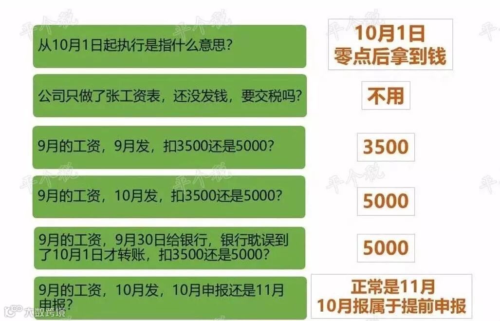 2.不管工资表算哪月的,10月1日0点之前拿到钱,扣3500,之后拿到钱,扣5000。