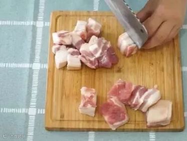 1、五花肉切块,放入碗中备好。
