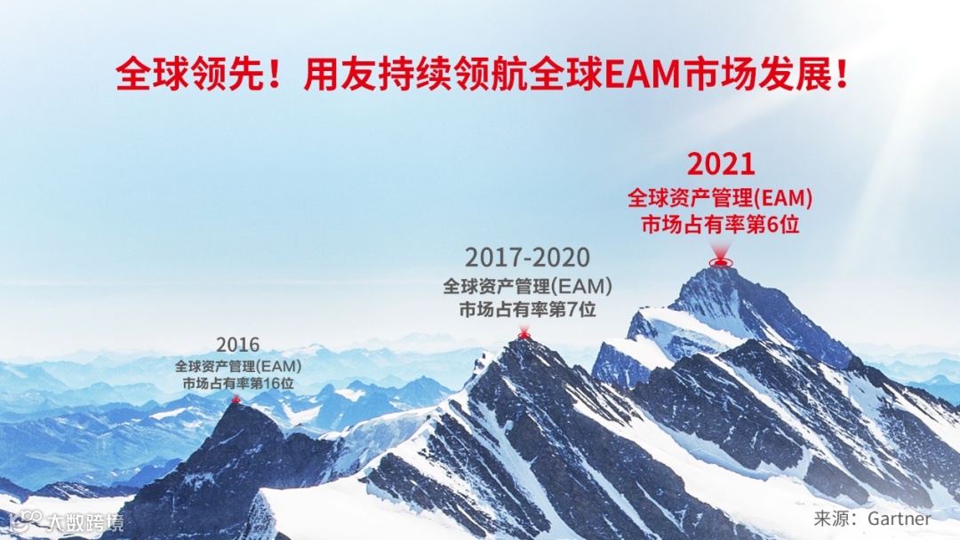全球权威信息技术研究和顾问公司Gartner发布《Market Share: All Software Markets, Worldwide, 2021》报告,用友在EAM(资产管理)市场占有率位居全球第六位,且连续多年位居全球10强! 是唯一入选的亚洲厂商!