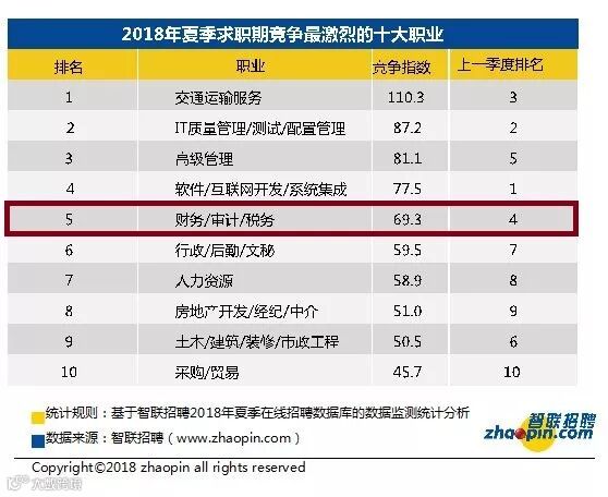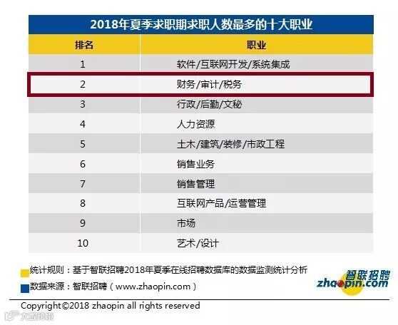 • 2018年夏季全国竞争最激烈的十个职业,财务/审计/税务排在第五位