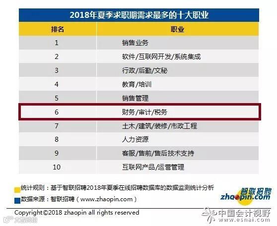 • 2018年夏季全国需求最旺盛的十个职业,财务/审计/税务排在第六位