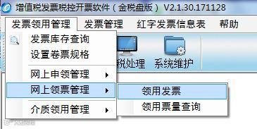 答案:请点击:发票管理-发票领用管理-网上领票管理-领用发票