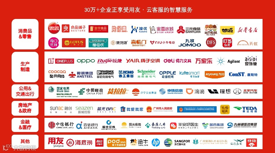接入用友BIP商业创新平台后,用友云客服服务了包括广州市人民政府、天津泰达、无锡财政厅、融创、碧桂园、恒大&保利、徐工集团、施耐德电气、首钢集团、惠普中国、三元股份、上海医药集团等来自政务及公共服务、房地产、消费品&零售、生产制造等行业客户。