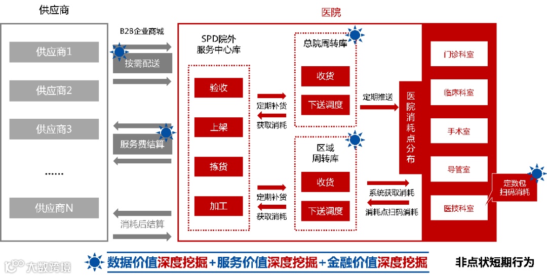 有这样一家高科技、智能化医疗器械供应链管理集团公司,它正处于高速增长阶段,年销售20亿,目标是三年登陆A股,业务角度目标是从服务30家区域客户拓展到1000家全国客户。要实现这个目标,首先要解决服务能力的复制与链接延展,其中包括企业与医院/医疗机构的链接,与合作伙伴的链接、与公司员工及设备终端的链接,从而促进企业从公司型管理向平台化组织转变;其次,要基于数据沉淀及AI能力,结合新技术及架构实现数据价值、端到端服务价值及金融价值的深度挖掘,赋能及推动上下游产业链企业转型升级。iuap基于业务的数据智能场景化应用建设,例如对供应商、术式套包、物流数据的标准化、精细化和智慧化管理,实现基于精准预测进行决策分析及业务动作,进而实现医院零库存,医疗物资的商品议价,以及生态资源合作伙伴供应商的结算日清月结,带来的资金账期处置金融价值等。