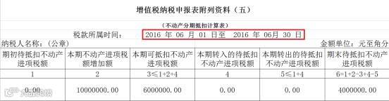 根据文件规定,1000万元进项税额中的60%将在取得扣税凭证的当期从销项税额中抵扣,也就是所属期2016年6月抵扣。