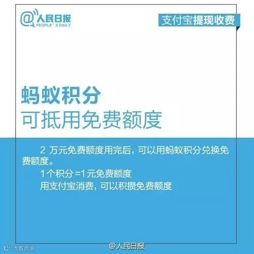 10月12日起,支付宝将对个人用户超过免费额度的提现收取0.1%的服务费,每人累计有2万元基础免费额度。因余额宝转出到本人银行卡继续免费,所以有个重要提醒:今天,快将你支付宝的余额转到余额宝里吧,用余额宝可以规避提现手续费。扩散周知!