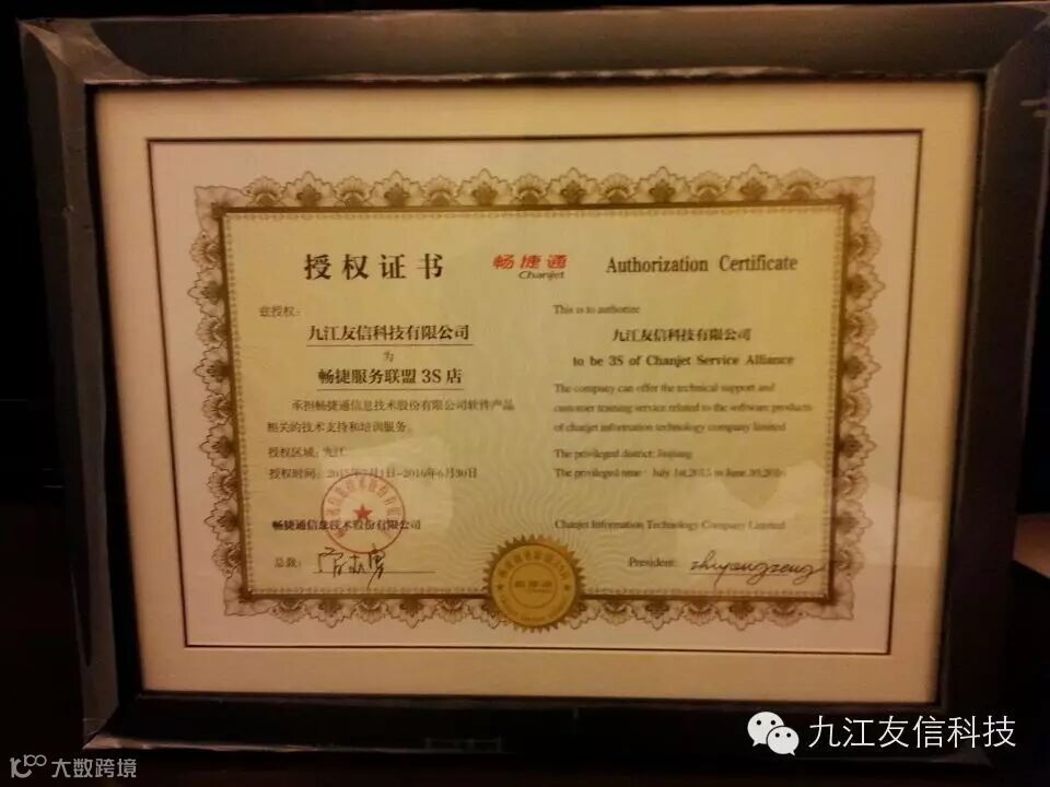 九江友信科技有限责任公司再次荣获用友畅捷通软件“畅捷服务联盟”优秀服务机构!联盟成员均需通过畅捷通公司组织的一系列培训及认证,全国只有106家,九江友信科技是九江地区唯一授权机构!