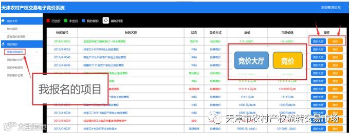 第一步>>>>登录天津农村产权交易所官网(www.tjnjs.com),点击“农村产权流转交易竞价报名系统”