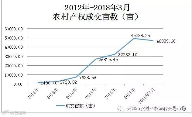 天津农交所自2012年正式运营至2018年3月底,累计组织完成农村产权交易686笔,涉及土地16.71万亩,总成交金额达21.65亿元。