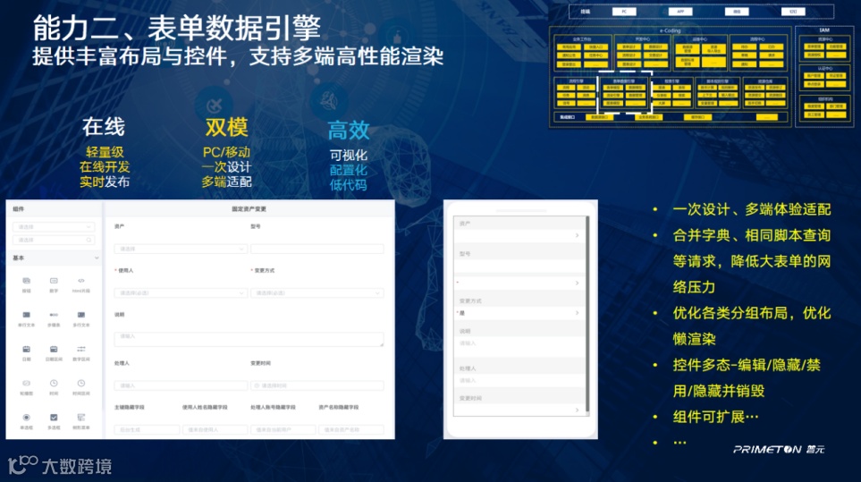 (2)表单数据引擎提供丰富布局与控件,降低技术复杂度提升开发效率