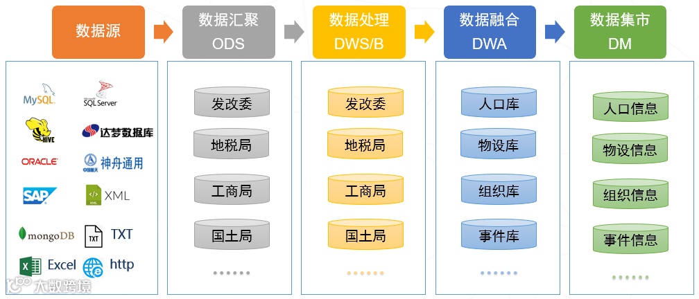 1、数据源:数据的来源,一般是由不同部门的各类来源数据,包括文件、数据库、Http服务等