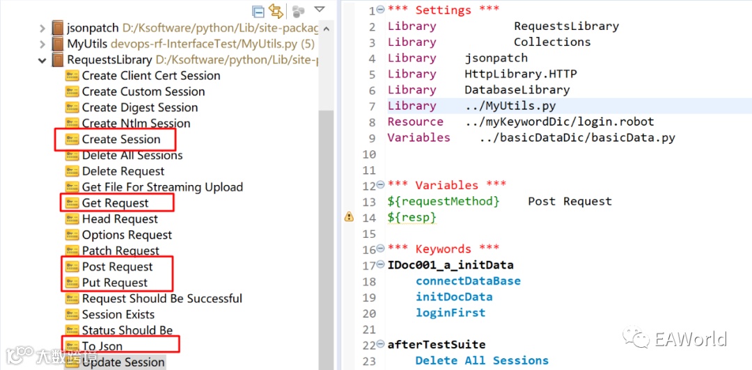 5、认识RequestLibrary以及DatabaseLibrary中的关键字。