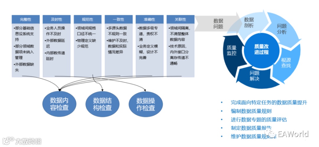 数据质量问题会发生在各个阶段,因此需要明确各个阶段的数据质量管理流程。例如,在需求和设计阶段就需要明确数据质量的规则定义,从而指导数据结构和程序逻辑的设计;在开发和测试阶段则需要对前面提到的规则进行验证,确保相应的规则能够生效;最后在投产后要有相应的检查,从而将数据质量问题尽可能消灭在萌芽状态。数据质量管理措施,宜采用控制增量、消灭存量的策略,有效控制增量、不断消除。