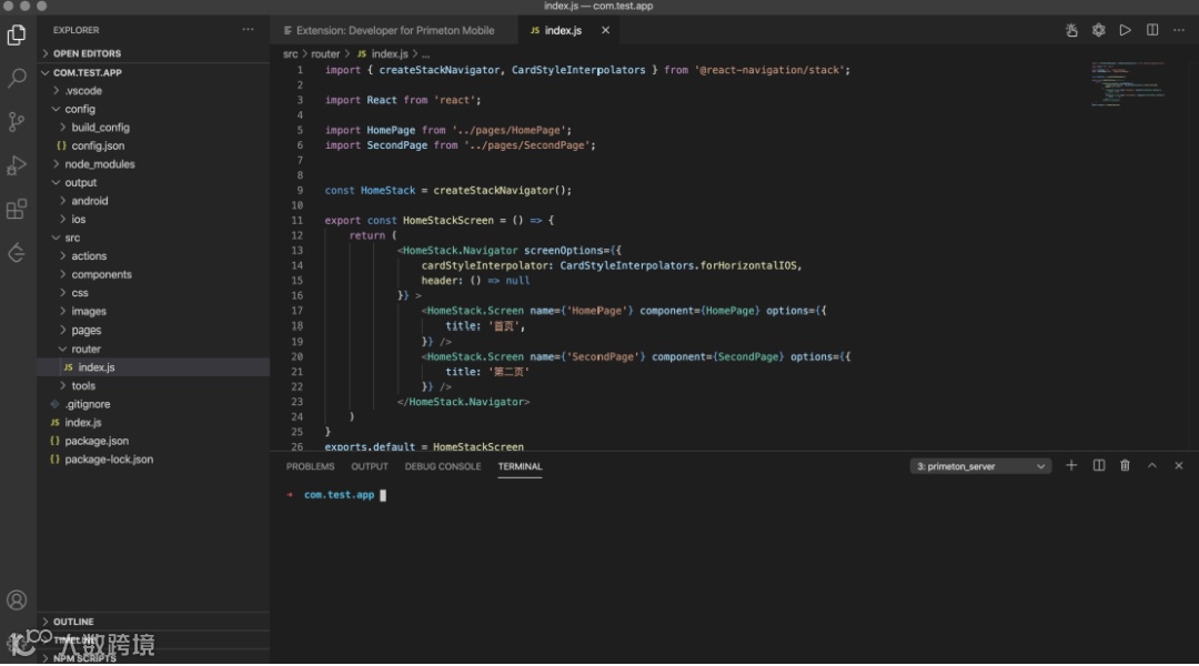 普元微应用与ReactNative原生应用不同,它将开发与打包分离开来。微应用的开发环境只关心RN开发,而把原生部分分离在项目之外,所以该目录结构对于只做RN开发的人来说会更加合理和便捷。微应用的代码部分在src下,配置文件在config下,打包产物在output下。开发者在开发阶段只需关注src下代码部分,专注开发业务逻辑,打包则交给平台完成。