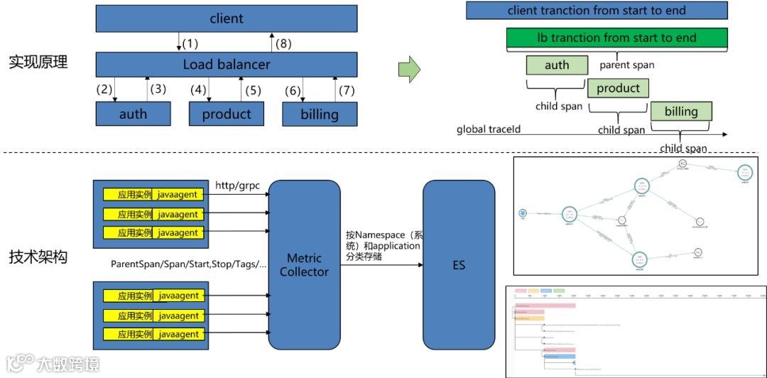 调用链跟踪分析:把同一TraceID的Span收集起来,按时间排序就是timeline。把ParentID串起来就是调用栈。