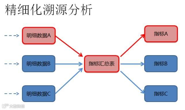 切片分析就是利用数据加工处理的程序的逻辑(通常是Sql脚本中的where条件),将中间的物理的汇总表切分为几个逻辑表,分别从汇总表前切分及汇总后进行切分。汇总表前切分,建立明细数据表A与逻辑汇总表A(虚拟的)关系。汇总表后切分,建立逻辑汇总表A(虚拟的)与指标A之间的关系。