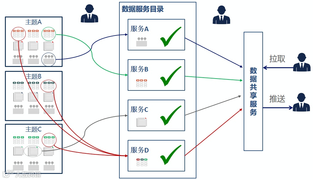 数据消费方:数据资源的使用方,通过资源目录查找相应的数据服务,向数据管理员提交数据服务申请使用数据。