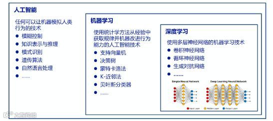AI是个很大的技术范畴,当前大热的机器学习是基于统计学方法的AI,而深度学习是机器学习中的最新大热门,当红炸子鸡。