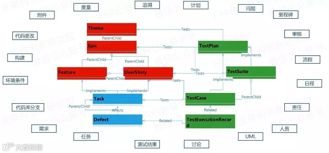 那什么又是将这三者融合在一起的方法呢?答案就是工作项(WorkItem)。它涵盖了需求(长篇故事,特性,用户故事),开发(任务,缺陷),测试(测试用例,测试计划)等。