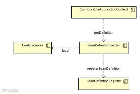 Spring Boot 是在启动 SpringApplication 之前,预先配置环境资源和属性变量,然后使用BeanDefinitionLoader加载配置源,并注册到BeanDefinitionRegistry;