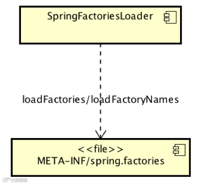 SpringFactoriesLoader 是一个抽象类,他会通过loadFactories/loadFactoryNames加载每个 jar 包中META-INF/spring.factories文件。