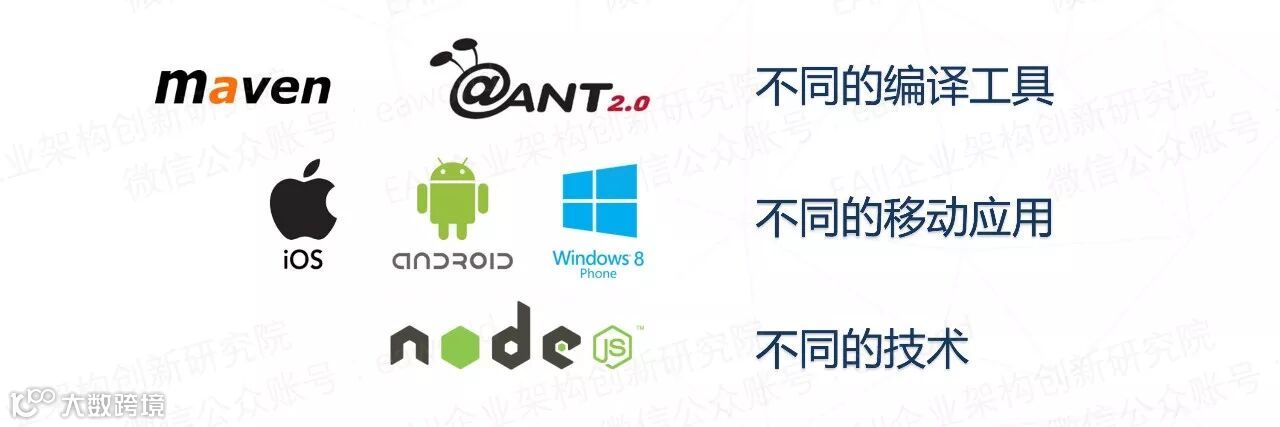 下面是DevOps对几类常见应用的持续集成的支撑。