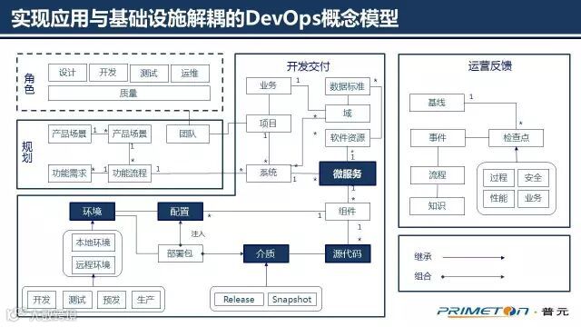 DevOps完整的逻辑视图,从三个层面进行抽象和解耦,基础设施平台、技术平台、DevOps平台,其中DevOps平台需要有明确的前后台分离。每个层面都抽象出自己的微服务。DevOps其实也是我们未来多方协作的一个工作平台,自动化我们日常部署、运维等重复的劳动。