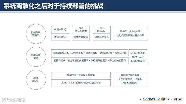 随着分布式技术与终端移动化,让原来的系统更加离散化,离散化的结果是:介质更多了,依赖更复杂了。对于有效快速的持续部署就是挑战。