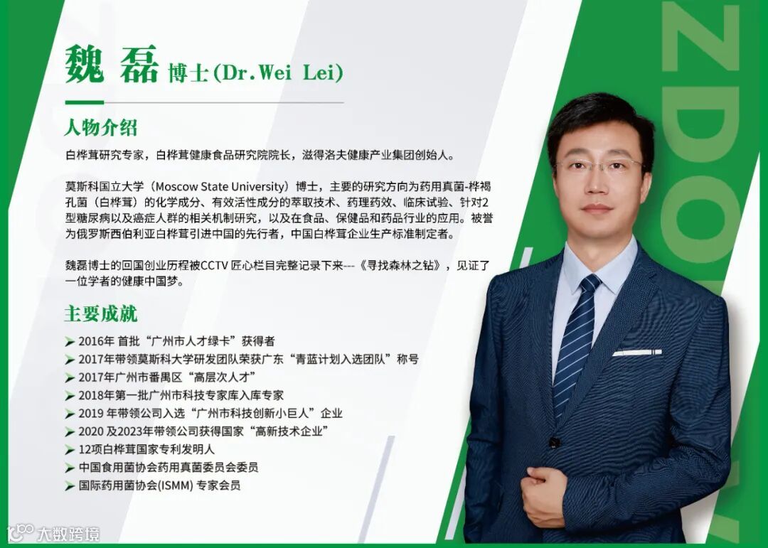 滋得洛夫白桦茸产业集团创立于2016年,集团下属公司分别有广州滋得洛夫生物科技有限责任公司、吉林滋得洛夫生物科技有限公司、滋得洛夫(山东)医药科技有限公司、白桦茸健康食品研究院(广州)有限公司,集团创始人魏磊博士毕业于莫斯科大学,是俄罗斯白桦茸研究专家,主要研究白桦茸的分成提取以及活性保留技术,集团专注于俄罗斯白桦茸全产业链供应,与俄罗斯国家科学院院士亚历山大.库琴组成技术研发团队,在俄罗斯西伯利亚拥有5大野生白桦茸原料采集基地,12项白桦茸提取技术国家发明专利,是国内专业俄罗斯白桦茸原料以及深加工产品供应商。