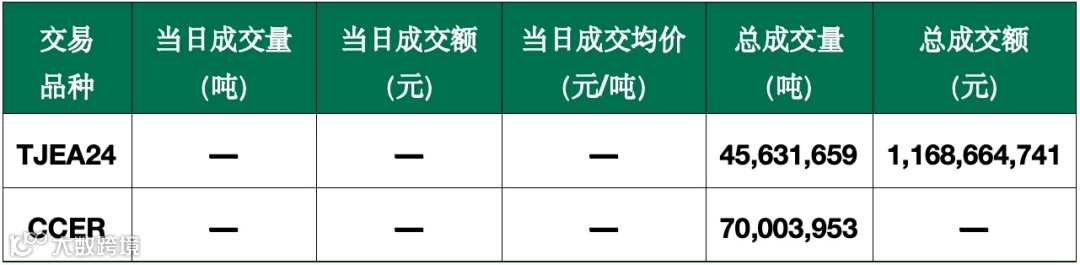 截至今日,天津碳市场配额累计成交45,631,659吨,成交金额1,168,664,741元;CCER累计成交70,003,953吨。