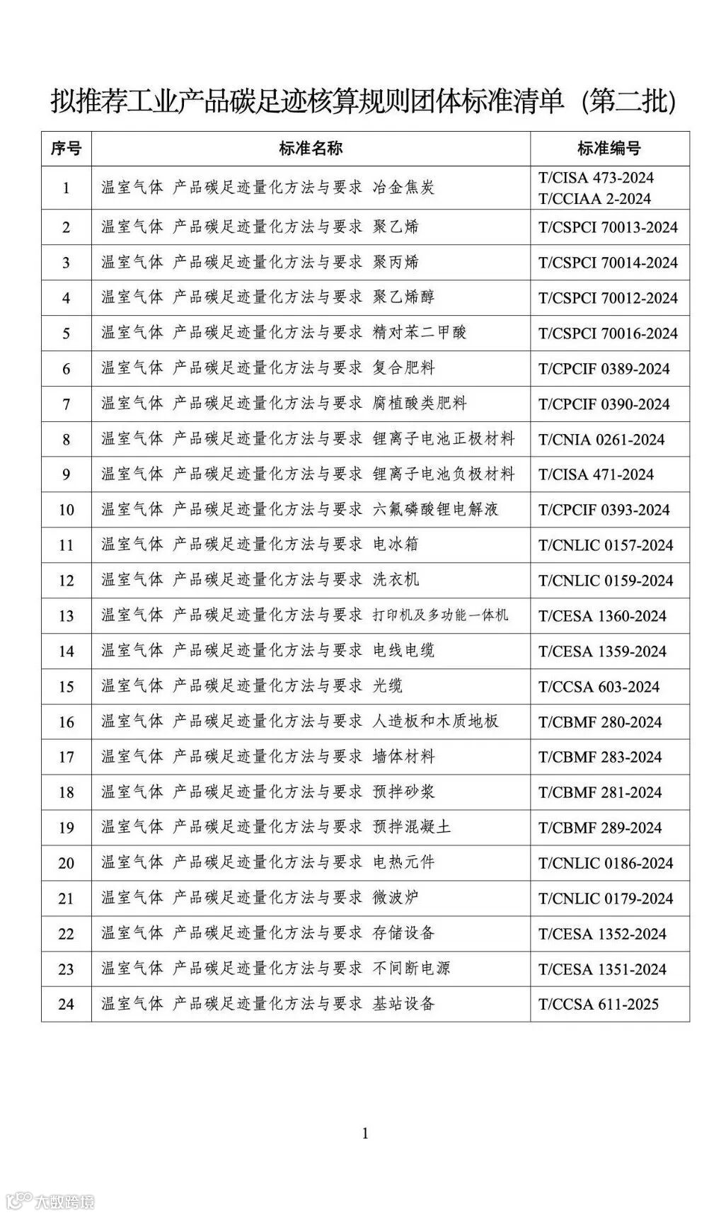 拟推荐工业产品碳足迹核算规则团体标准推荐清单(第二批)公示