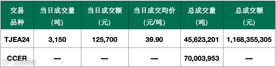 截至今日,天津碳市场配额累计成交45,623,201吨,成交金额1,168,355,305元;CCER累计成交70,003,953吨。