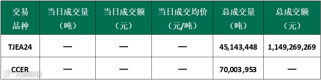 截至今日,天津碳市场配额累计成交45,143,448吨,成交金额1,149,269,269元;CCER累计成交70,003,953吨。