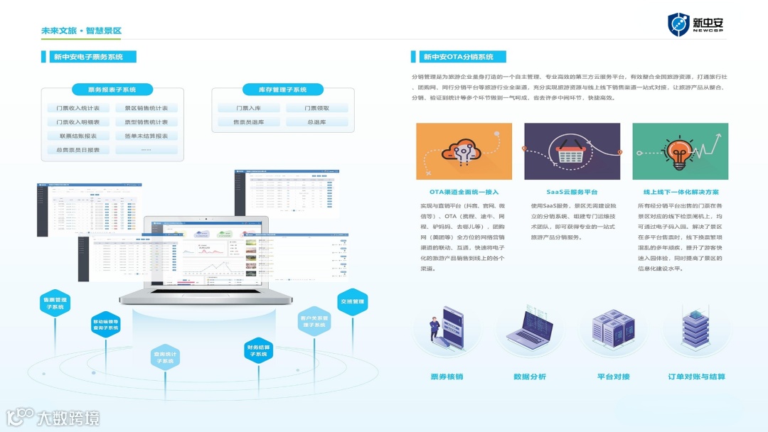 新中安构建文旅新生态,围绕文旅行业开展“五化”(数智化、便民化、场景化、品牌化、运营化)业务,构建“一体”(策划设计、系统开发、项目实施、品牌营销、运营服务)化的交钥匙工程,推动文旅数智化、便民化、场景化、品牌化、运营化、一体化变革,成为文旅行业提供数智化场景应用与一站式价值服务商。