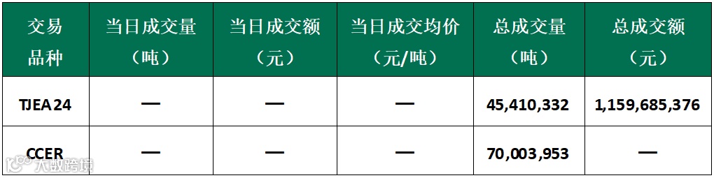 截至今日,天津碳市场配额累计成交45,410,332吨,成交金额1,159,685,376元;CCER累计成交70,003,953吨。