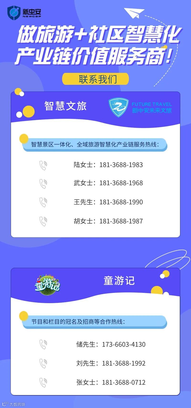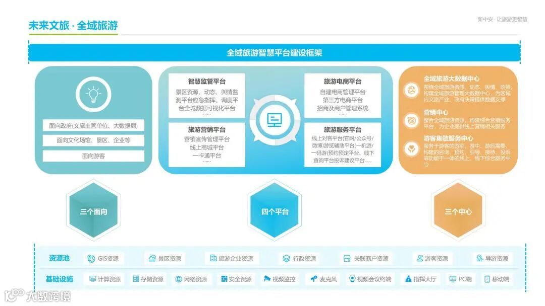 新中安构建文旅新生态,围绕文旅行业开展“五化”(数智化、便民化、场景化、品牌化、运营化)业务,构建“一体”(策划设计、系统开发、项目实施、品牌营销、运营服务)化的交钥匙工程,推动文旅数智化、便民化、场景化、品牌化、运营化、一体化变革,成为文旅行业提供数智化场景应用与一站式价值服务商。