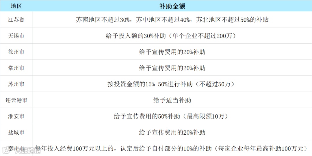 为加快推进全省旅游产业发展,促进全省旅游业改革发展,提高资金使用效率,充分发挥旅游发展专项资金的引导作用,江苏省省厅特制定《文化和旅游发展专项资金(宣传广告联合投放)项目申报指南》,13个地级市也分别制定各自文旅营销宣传补贴。