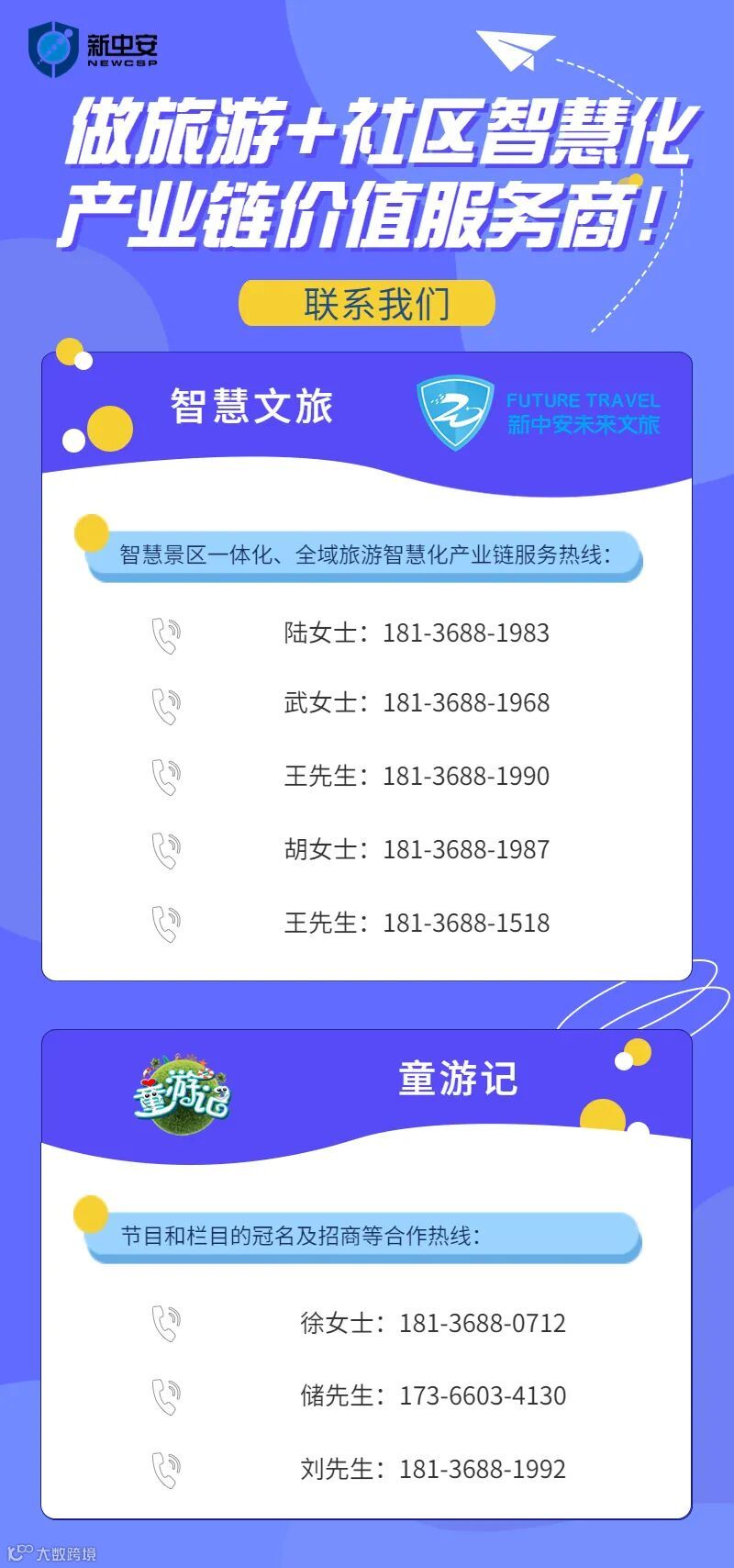 新中安构建文旅新生态,围绕文旅行业开展“五化”(数智化、便民化、场景化、品牌化、运营化)业务,构建“一体”(策划设计、系统开发、项目实施、品牌营销、运营服务)化的交钥匙工程,推动文旅数智化、便民化、场景化、品牌化、运营化、一体化变革,成为文旅行业提供数智化场景应用与一站式价值服务商。