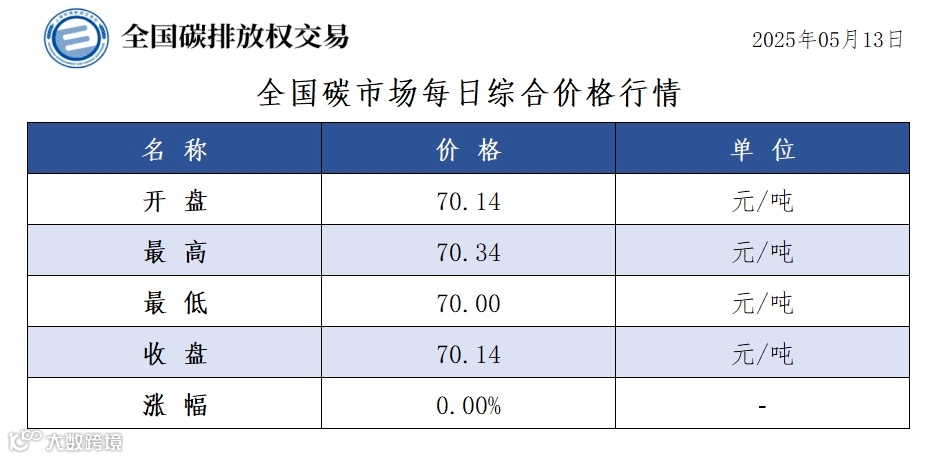 2025年1月1日至5月13日,全国碳市场碳排放配额成交量15,987,911吨,成交额1,278,621,099.64元。