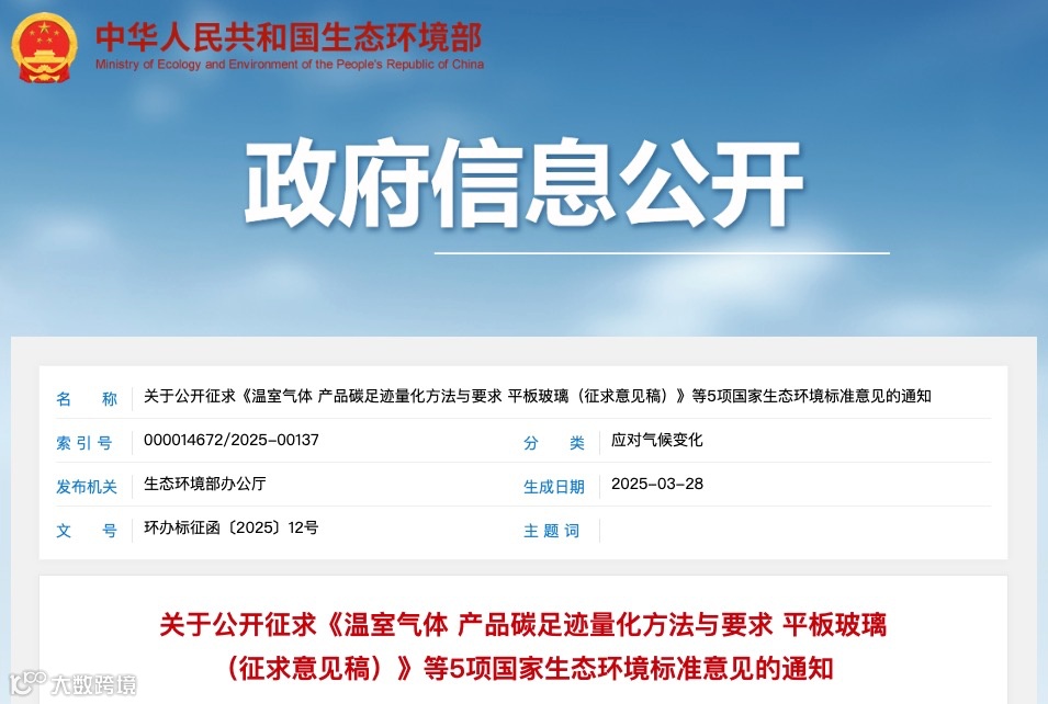 请点击下方“阅读原文”浏览 《温室气体 产品碳足迹量化方法与要求 平板玻璃》等5项国家生态环境标准征求意见的通知附件
