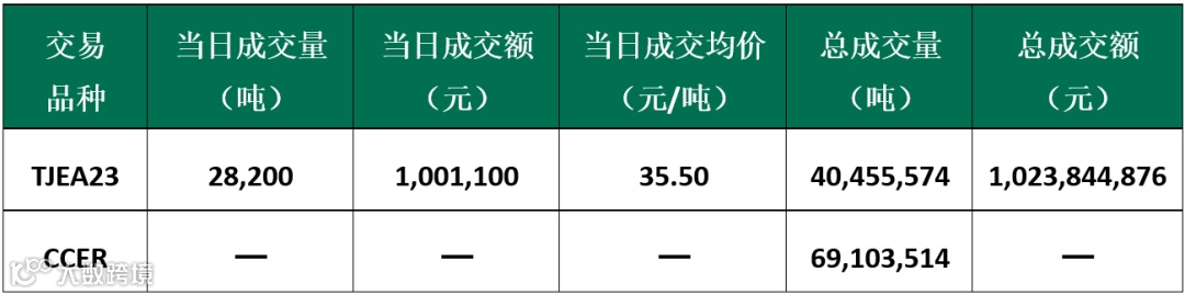 截至今日,天津碳市场配额累计成交40,455,574吨,成交金额1,023,844,876元;CCER累计成交69,103,514吨。