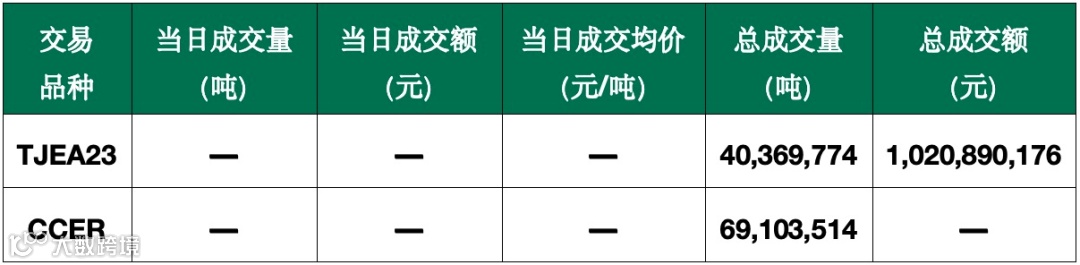 截至今日,天津碳市场配额累计成交40,369,774吨,成交金额1,020,890,176元;CCER累计成交69,103,514吨。