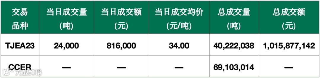 截至今日,天津碳市场配额累计成交40,222,038吨,成交金额1,015,877,142元;CCER累计成交69,103,014吨。