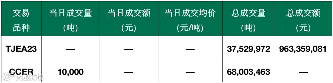 截至今日,天津碳市场配额累计成交37,529,972吨,成交金额963,359,081元;CCER累计成交68,003,463吨。
